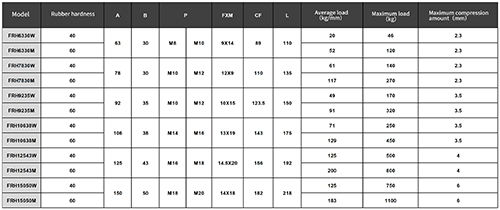 Амортизаторы серии FRH bell-type могут достигать очень высоких эффектов амортизации при осевом и боковом давлении, особенно при использовании в двигателях и системах двигателя, эффект амортизации очень очевиден. Резиновые и железные детали внутри изделия полностью приклеены, и, кроме того, посередине есть предохранительный замок для блокировки продукта, который очень надежный и долговечный. Кроме того, на металлической крышке есть канавки, которые помогают удалить масло и другие загрязняющие вещества и предотвратить контакт с резиновой частью.