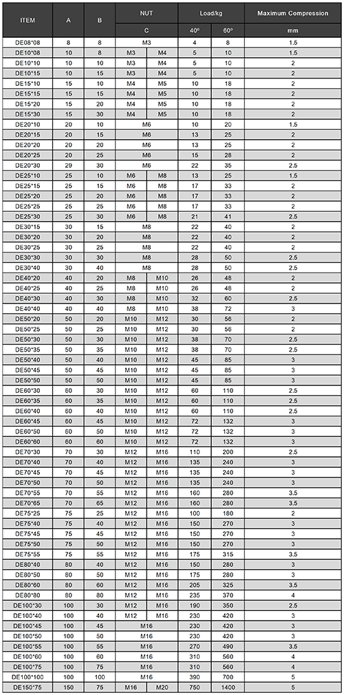 DE - это ТИП ЖЕНСКИХ БУФЕРОВ. Диапазон размеров доступен в различных размерах от 8 до 150 мм, подходит для использования в любом приложении, требующем изоляции вибрации, где требуется резьба. Они доступны в натуральном каучуке в стандарте, но другие соединения доступны по запросу. Металлические детали из нержавеющей стали также доступны по запросу для крупных заказов.