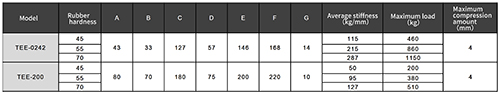 TEE изготовлен из резины, зажатой между двумя металлическими пластинами (их также можно назвать прямоугольными кронштейнами). Он может производить ряд размеров и стилей сэндвич-установок, включая монтажные отверстия и/или винтовые крепежи, а также один или несколько металлических сэндвич-слоев. Эти кронштейны предлагают возможность различной жесткости в трех направлениях загрузки. Они имеют простую структуру и используются в широком спектре применений, включая установку двигателя, установку экранного конвейера и в качестве общей пружины вибрационного оборудования.
